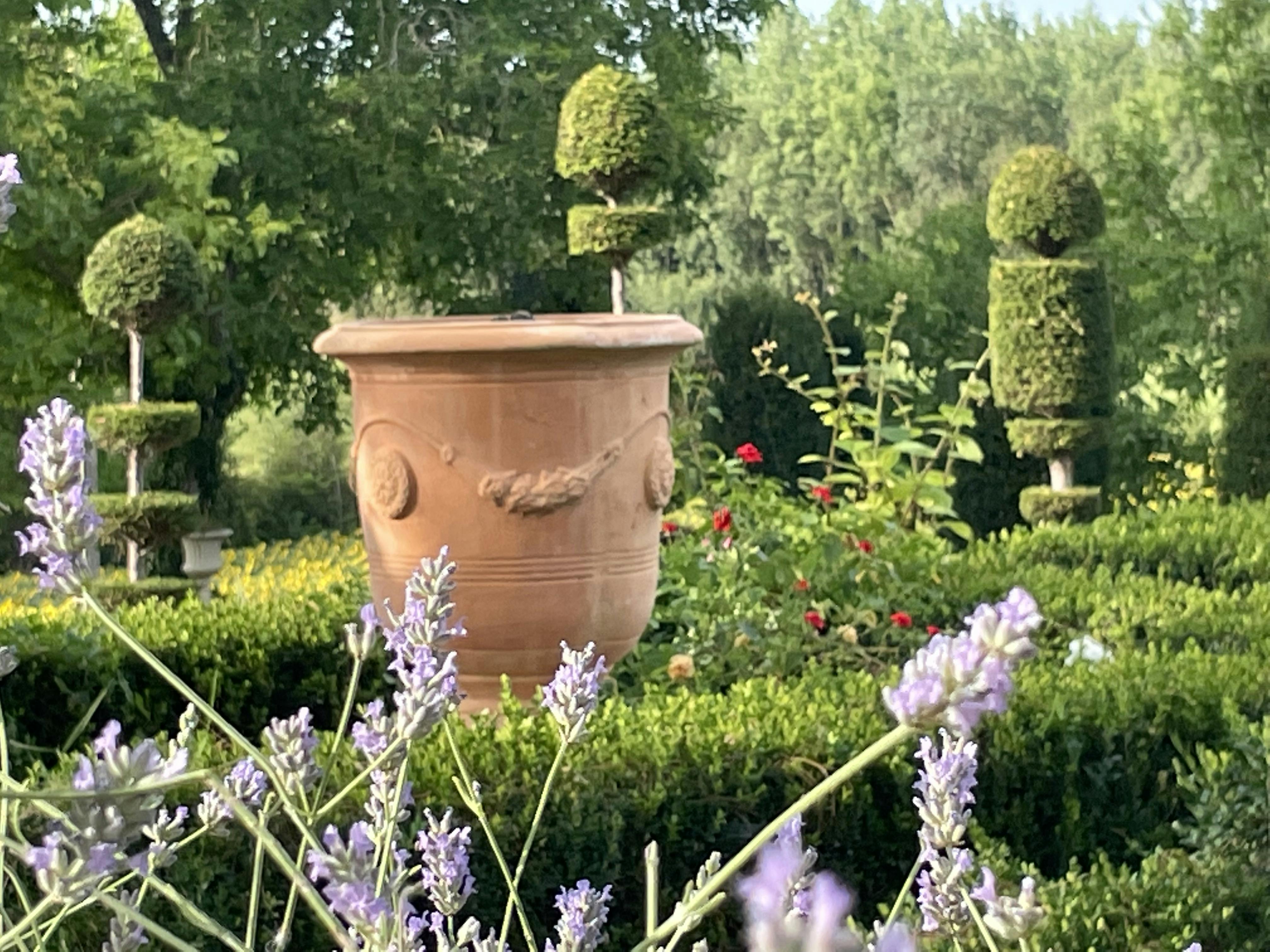 Les jardins sont des jardins de l’avenir, inscrits dans une démarche esthétique, écologique, et pédagogique durable. C’est un jardin qui a été conçu dès le départ avec une gestion durable de l’eau. Nous avons privilégié un choix intelligent de plantes adaptées au terrain et au climat. En période de sécheresse nous utilisons l’eau de pluie stockée dans des citernes pour arroser la nuit, . Nous sommes en train de créer un bassin de rétention d’eau de pluie dans la potager et nous utilisons des ollas de la poterie JAMET.