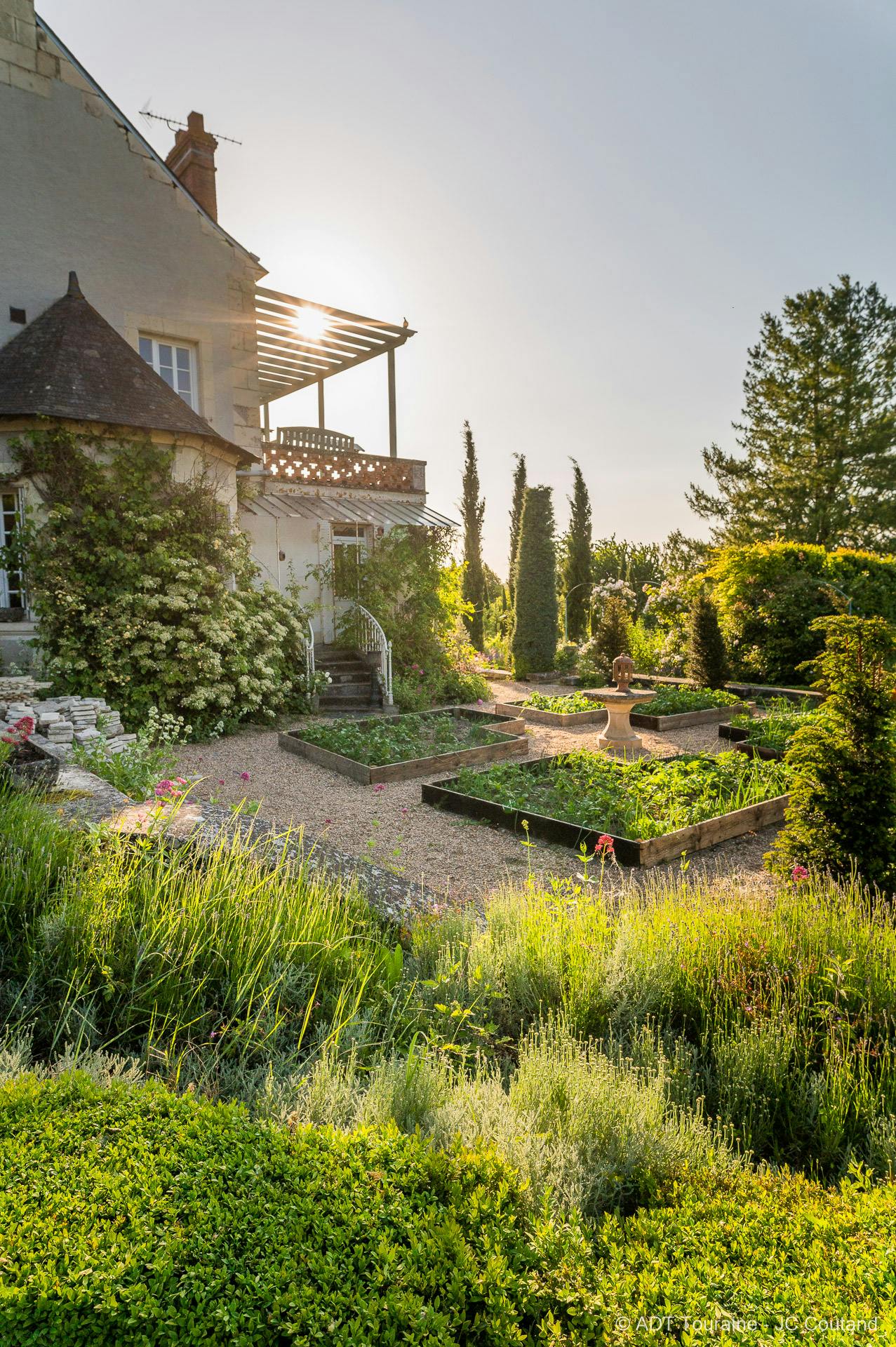 L’ approche s’éloigne des jardins traditionnels à la française. Ici la Nature est reine, il faut s’adapter à elle et l’écouter. Plantés exclusivement de vivaces médicinales, mellifères et aromatiques, avec des point d’eau, petits bassin et ollas, les jardins se veut sanctuaire de la biodiversité et refuge des espèces menacées.